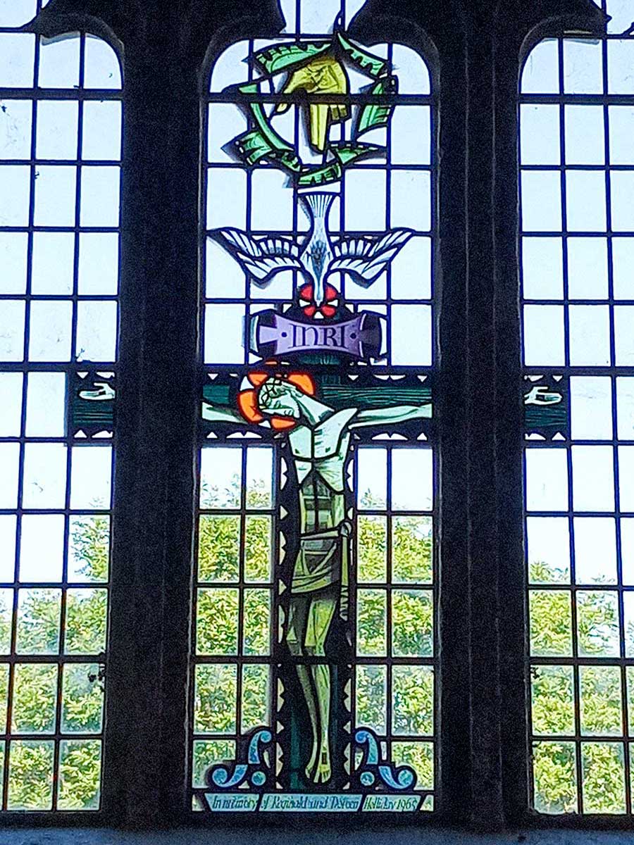 The clear glass allows the natural world – the sky and trees – to come inside the church.
