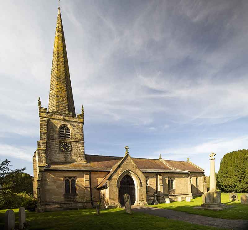 St Edith’s is dedicated to the Anglo-Saxon royal saint, Edith of Wilton in Wiltshire (961-984). The church dates from the Norman period and contains some remarkable early carvings above the south door and in the chancel arch. The two aisles, spire and porch were added over subsequent centuries. The church was sympathetically restored in 1858-9 by Sir Tatton Sykes of Sledmere and boasts a beautiful painted roof decorated with gold leaf.