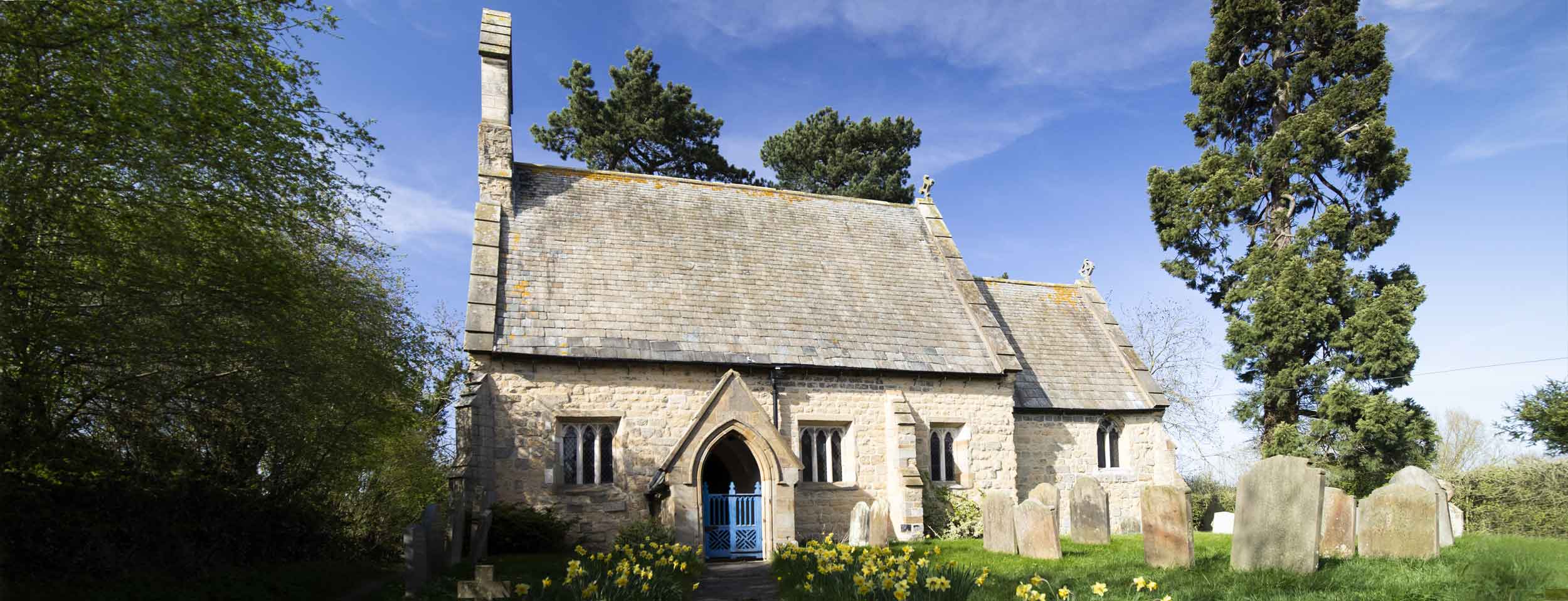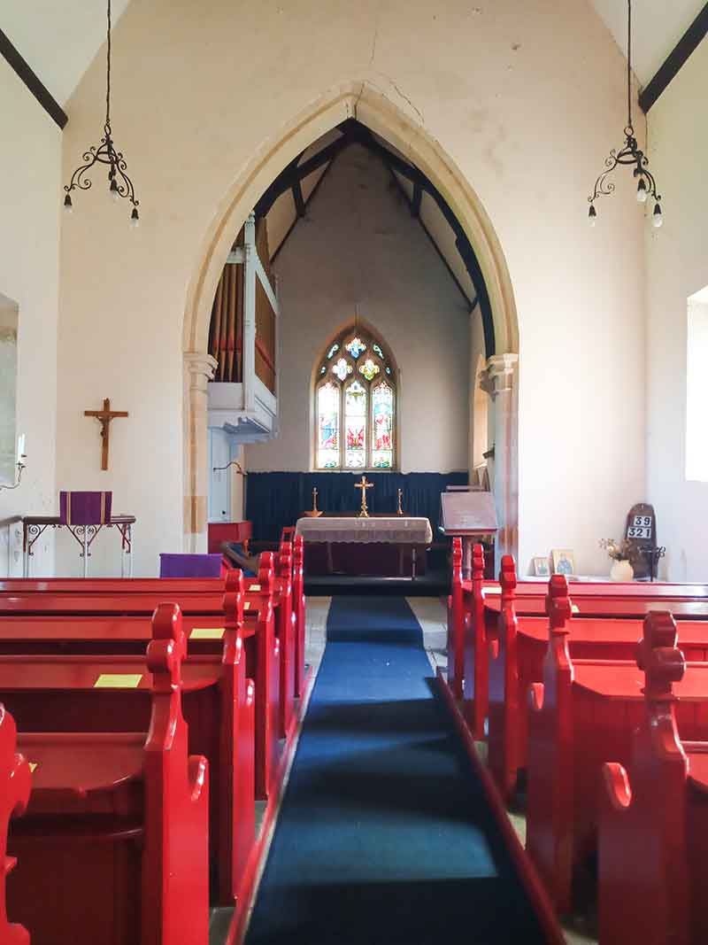 The church, a grade II listed building, is set back from the road in the oldest part of the village. Dating from 1845, and built using stone from a much earlier mediaeval building, the church contains the original pews but lacks running water or toilet facilities. The church bells used to ring each Sunday morning but have been removed due to safety concerns and are on display in the church. One of these bells dates from around 1370.